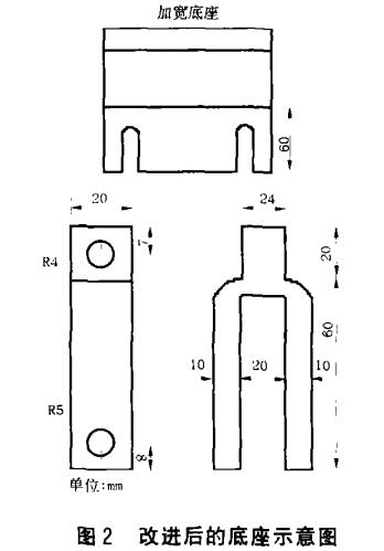 在維修工作中,常發現三相E型剎車電磁鐵變形,原因是電磁鐵動鐵芯經常受到沖擊, 使動鐵芯與靜鐵芯接觸面被撞大,造成動鐵芯的活動導軌面受到磨損。一旦卡角動鐵芯與靜鐵芯吻合面不能很好地接觸,電磁鐵內部將形成較大磁阻,引起線圈產生足以使線圈發熱燒毀的電流,致使電磁鐵線圈燒毀。當3個線圈中任意1個燒毀,電磁鐵吸引力平衡被破壞,另外2個也就很快跟著燒毀,只好將3個線圈同時換掉。這種電磁鐵在 設計時因考慮到簡潔,動鐵芯與制動拉桿之間只有一根連桿,極易造成動鐵芯的不平衡使鐵芯被卡住,致使制動電磁鐵線圈發熱燒毀。在易燃易爆場所更換線圈時,必須裝上防爆裝置才能試車,這時無法觀察到鐵芯的動作情況,常常造成返工。為了克服電磁鐵線圈經常燒毀的問題,經過仔細觀察發現,如果將制動剎車調節到佳狀態時,制動拉桿的力約在68.6—78.4N之間,完全可以用MQI-513型、吸引力為78.4N、行程為25em的牽引電磁鐵來代替原有的三相式E型電磁鐵。按圖1先將原來固定三相電磁鐵的底座加寬6ocm,然后按電磁鐵底板的尺寸鉆孔,把電磁鐵倒裝上去。為防止電磁鐵的活動鐵芯超行程滑脫出來在牽引電磁鐵活動鐵芯與制動器連桿之間,按圖2的尺寸重做一個。固定好電磁鐵后就可以把連桿與動鐵芯用鋼梢固牢。