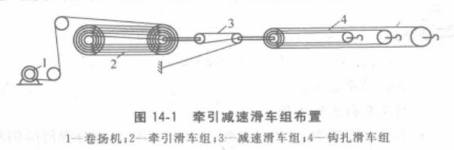 牽引減速滑車組鋼絲繩的穿繞方法均為順穿法。