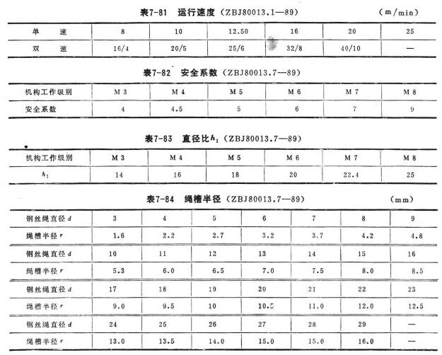 小于表7-83的數值。卷筒繩槽半徑r的最小值(r=0.525應符合表7-84的規定。