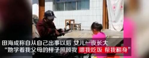 寧夏的一位姓田的男子在兩年前遭遇了車禍,這場車禍也讓男子高位截癱,喪失了工作能力,出事之后,男子的妻子離家出走,并且將女兒留下來了,這么小的年紀,本該快快樂樂無憂無慮的長大,但是卻背上了照顧癱瘓爸爸的重擔,由于兩個人實在沒有生活來源,從一年前開始6歲女兒便直播照顧自已的爸爸,依靠著每個月4000元的打賞生活,但是卻被人質疑在“賣慘”。