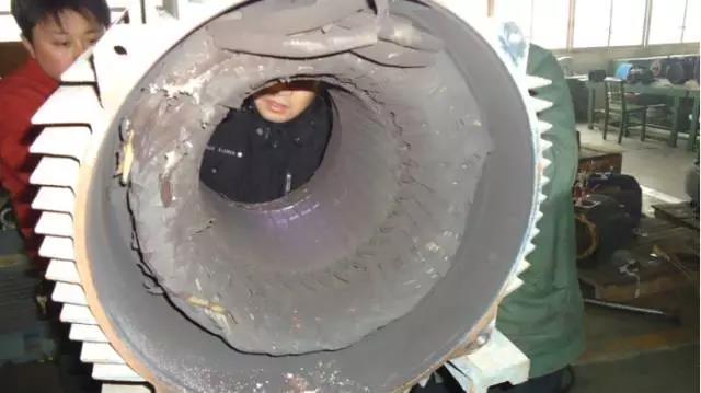 特征:繞組全部變黑色,端部扎帶變色并且變脆甚至斷裂。