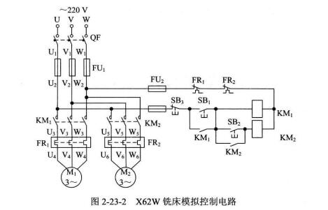 (2)X62W銑床模擬控制電路如圖2-23-2所示,請讀者自行分析其工作原理。